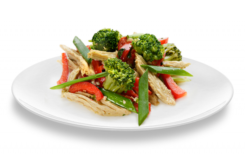 Легкий салат из соевой спаржи с добавлением капусты брокколи, перца болгарского зеленого лука и кунжута. Заправляется фирменной кунжутной заправкой.
