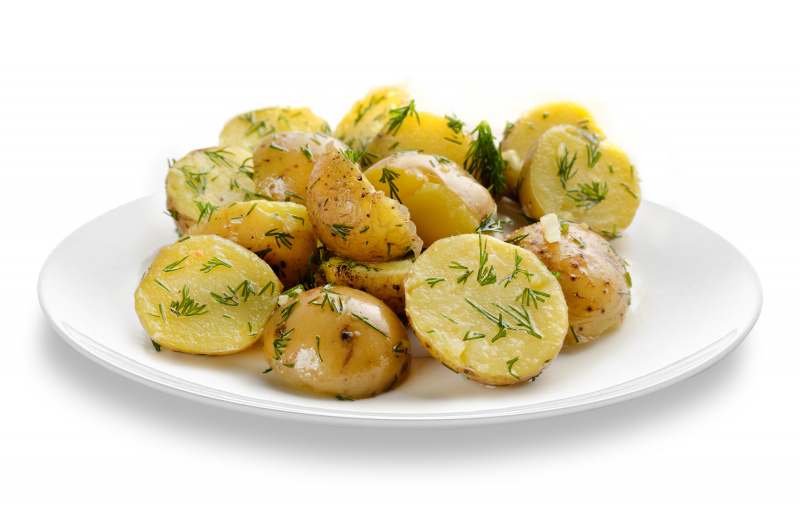 Картофель молодой с зеленью и чесноком.