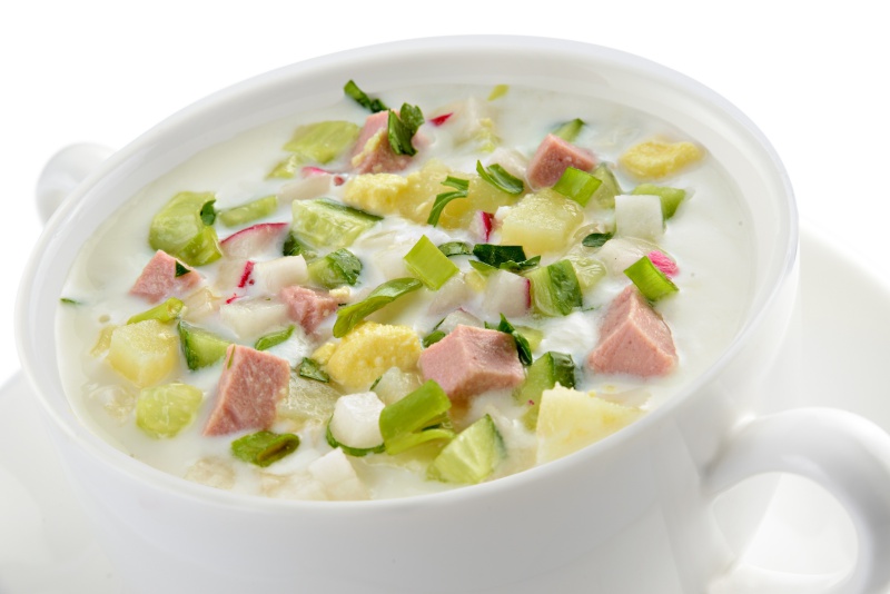 | Состав | Колбаса докторская, редис, яйцо куриное, огурец, картофель, кефир, зелень, лук зеленый |